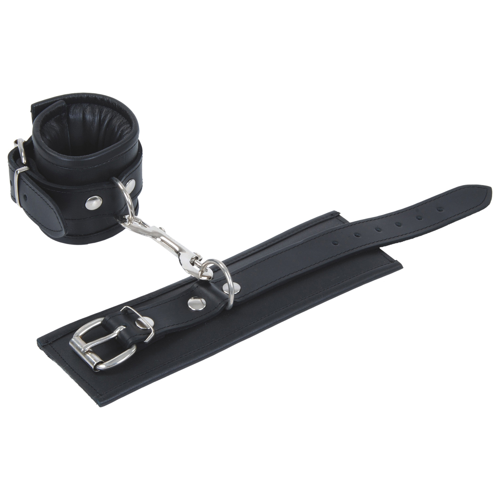 Diese Handfesseln sind mit einem weichen Lederpolster ausgestattet, das für einen angenehmen Tragekomfort sorgt. Der robuste Riemenverschluss ermöglicht eine sichere und stabile Fixierung, während die verscheißten D-Ringe vielseitige Befestigungsmöglichkeiten bieten.