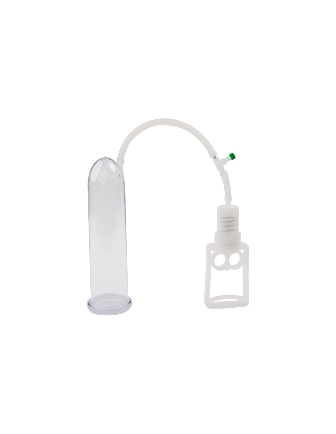 Für die Anwendung zunächst etwas Gleitmittel auf Wasserbasis auf den Penis auftragen. Anschließend den Zylinder über den schlaffen Penis ziehen und sanft gegen den Körper drücken. Danach den Schlauch der Vakuumpumpe mit dem Anschluss des Zylinders verbinden und durch vorsichtiges Drücken des Pumpballs ein Vakuum erzeugen. Da sich die empfindliche Haut langsam an den Unterdruck gewöhnen sollte, empfiehlt es sich, den Druckregler während der Anwendung regelmäßig kurz zu öffnen. So kann die Durchblutung zwischendurch zurückkehren, bevor erneut gepumpt wird. Die Anwendung sollte maximal 20 Minuten dauern und bei Schmerzen oder Unwohlsein sofort beendet werden.